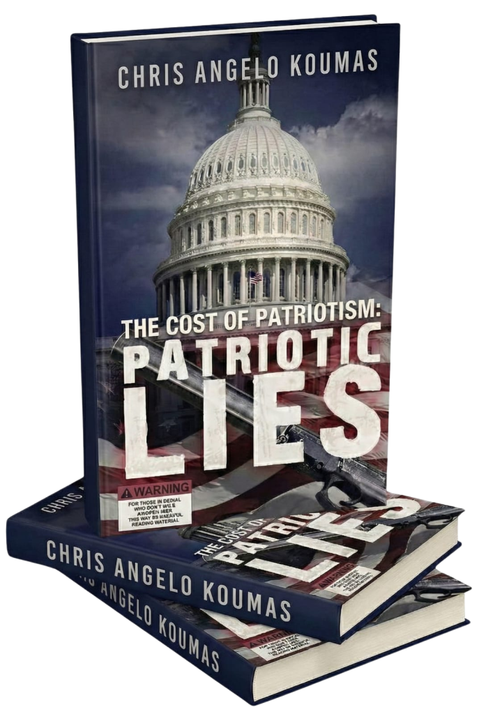 The Cost Of Patriotism: Patriotic Lies is more than a book — it is the true account of Chris Angelo Koumas’s relentless mission to uncover the truth, protect the innocent, and expose the corruption hidden within the very systems meant to defend our nation. Chris served as an undercover FBI investigator, driven not by recognition or reward, but by a fierce loyalty to his country and a deep sense of justice. His work placed him face-to-face with hard truths about political corruption, government failures, and the mistreatment of the very veterans who sacrificed for America — including his own father.